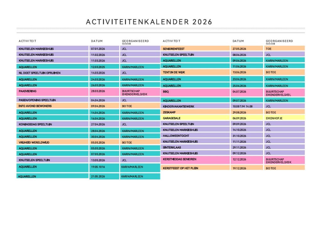 ACTIVITEITENKALENDER EIKENDERVELD
