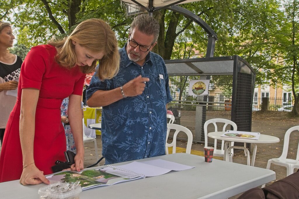 Na de lunch sloten diverse medewerkers van gemeente, politie, handhaving en buurtregie aan om samen door de wijk te lopen. Alle geledingen die veel voor de leefbaarheid van Eikenderveld kunnen betekenen waren vertegenwoordigd. De wandeling eindigde op de speelplaats van Basisschool Eikenderveld, waar de Nieuwjaarsmarkt in volle gang was. Naast de tent van BO TOE waren gemeente, BMM en de stadstuin aanwezig om bezoekers te informeren over de rigoureuze vergroening.