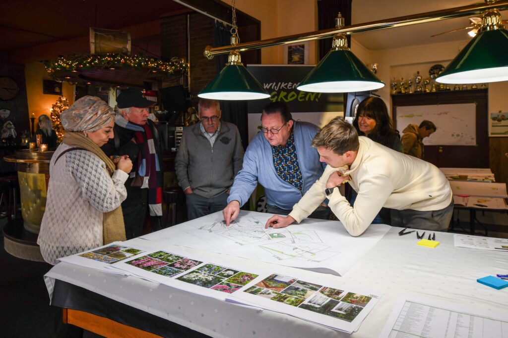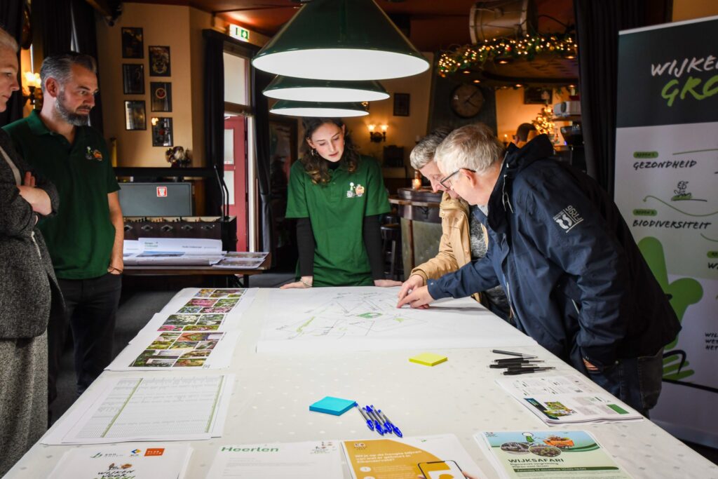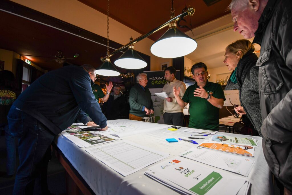 De 3e bijeenkomst, nu in café Dingus. Een dergelijke bijeenkomst is vooral bedoeld om informatie op te halen, want door in gesprek te gaan én te blijven met de wijk kunnen plannen alleen maar beter worden. De ‘potloodschetsen’ worden samen met de bewoners definitief gemaakt en vervolgens gaat er in 2025 veel functieloze verharding wijken voor groen!