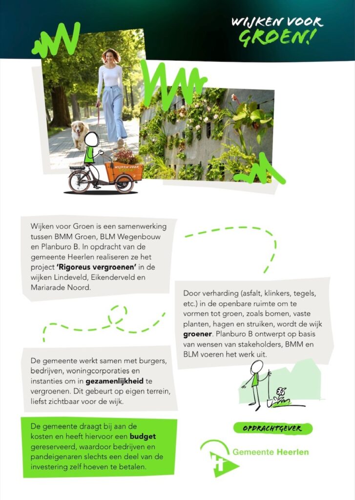 De Gemeente Heerlen investeert in de directe leefomgeving van inwoners. Daarom is een flink budget beschikbaar om in 3 wijken rigoureus te vergroenen.