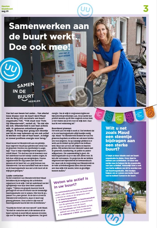 Vergeet ook de oproep boven het artikel niet… SAMENWERKEN AAN DE BUURT WERKT. DOE OOK MEE!